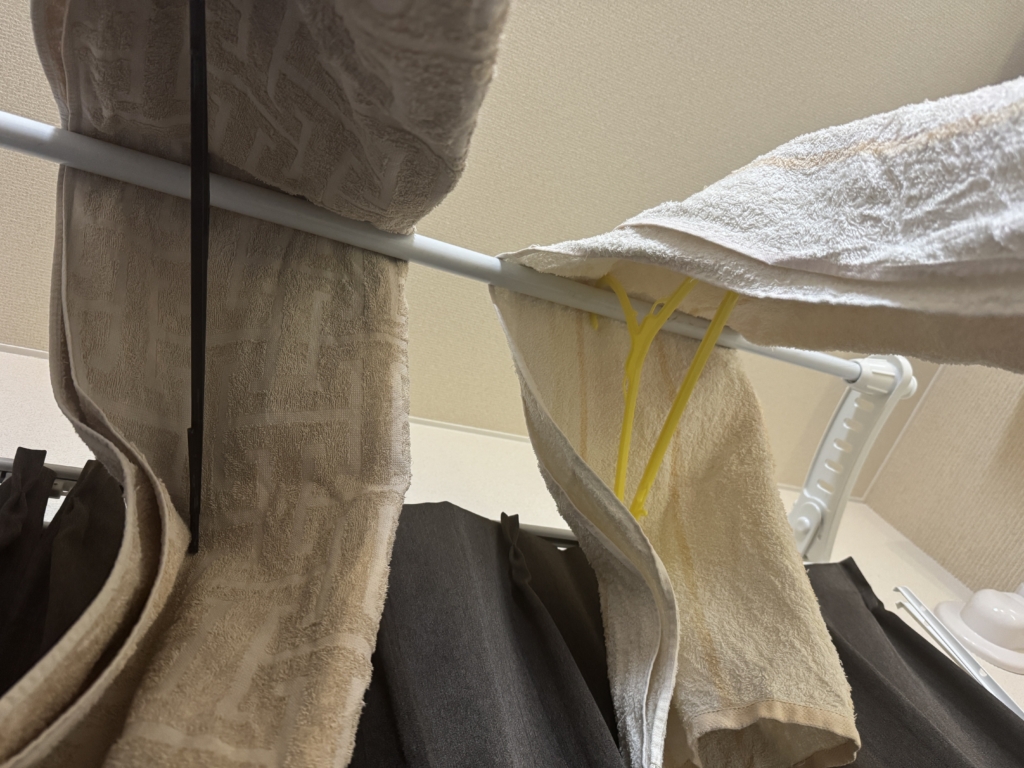 それだけです。 でも、これをやるようになってから、タオルの乾きが明らかに変わりました。
